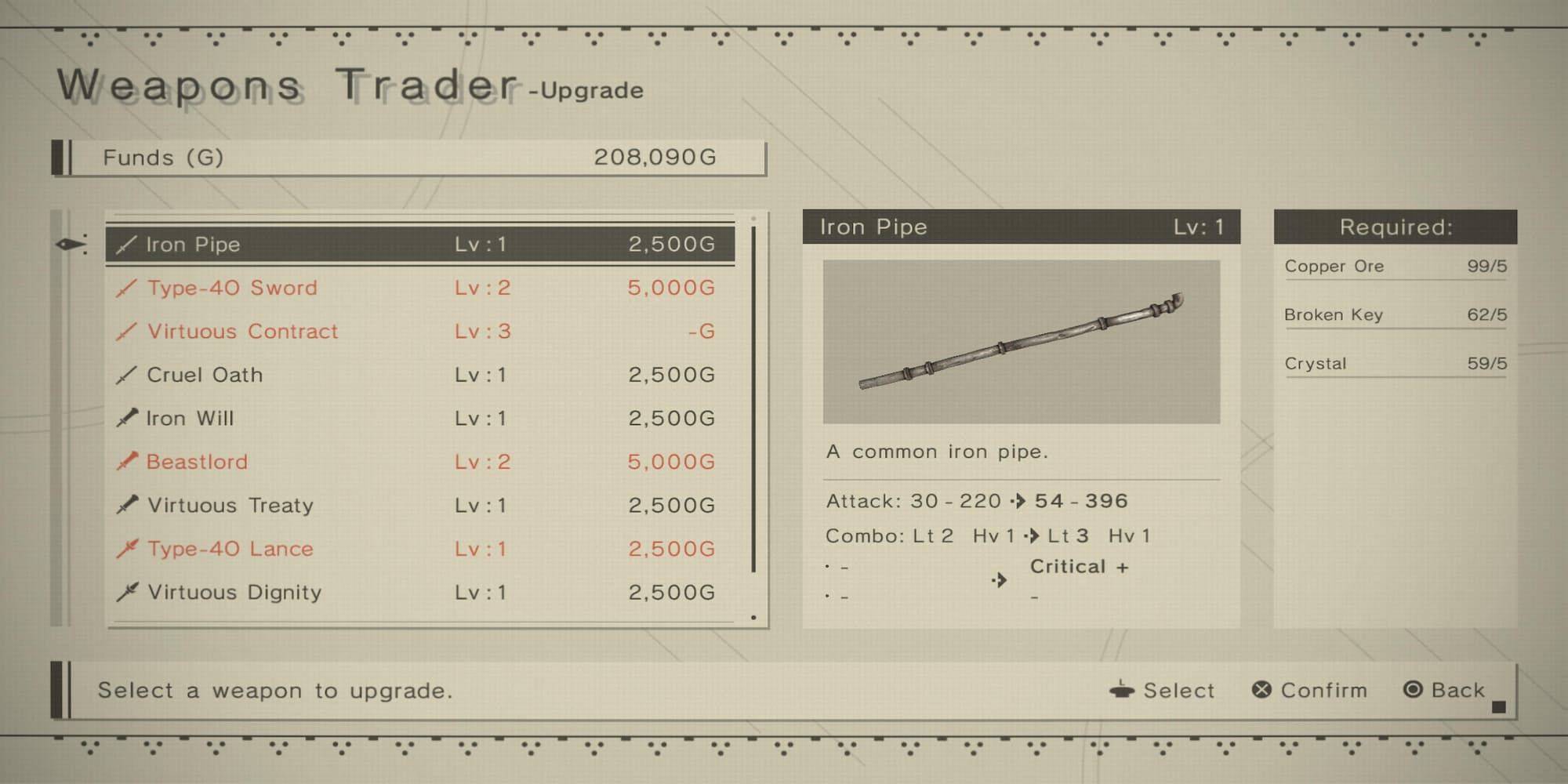 O Tubo de Ferro mantém uma ampla faixa de dano independentemente do nível de atualização. No entanto, quando a sorte está ao seu lado, ele pode desferir alguns dos golpes mais poderosos do jogo e torna-se disponível relativamente cedo. Abaixo estão os requisitos de atualização e as estatísticas correspondentes: